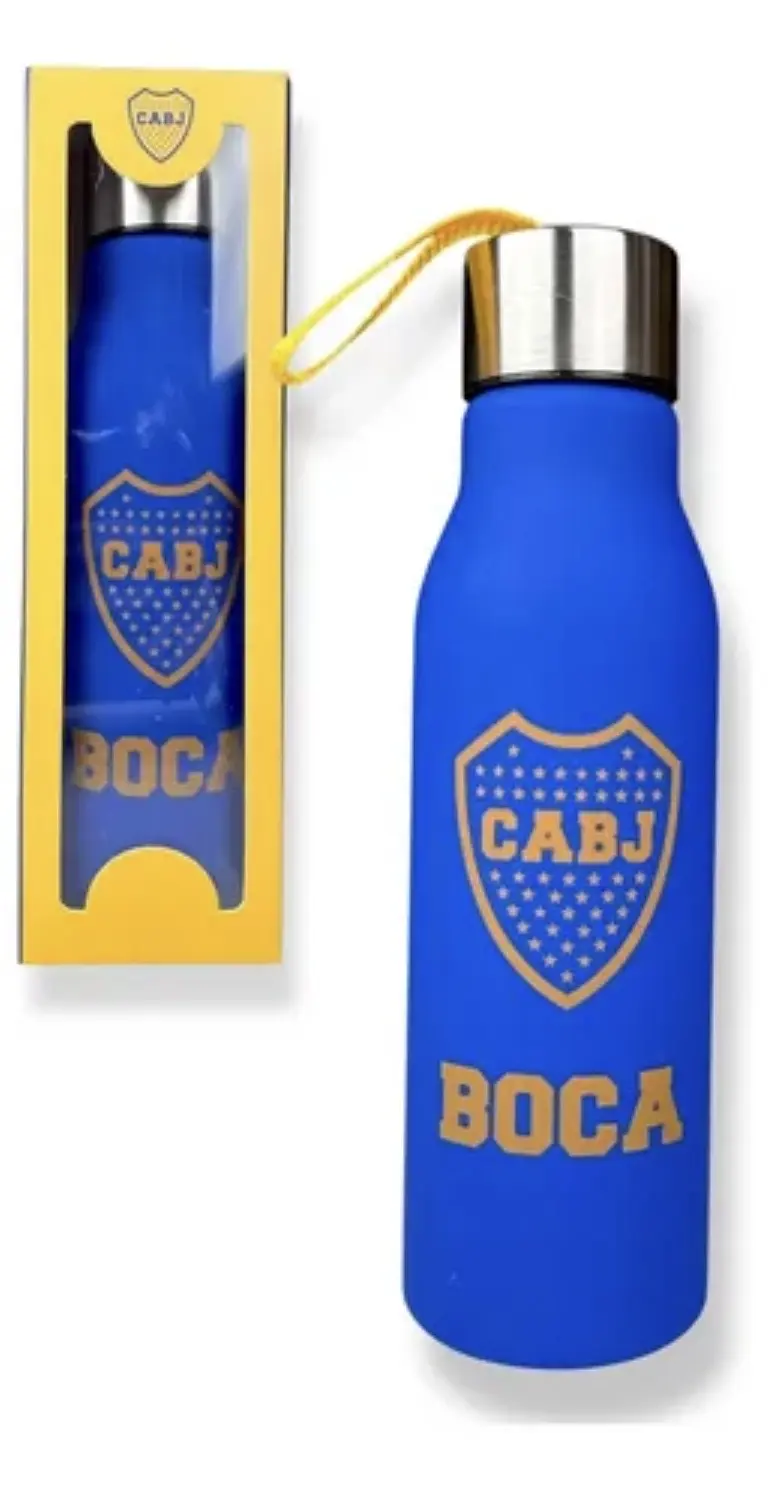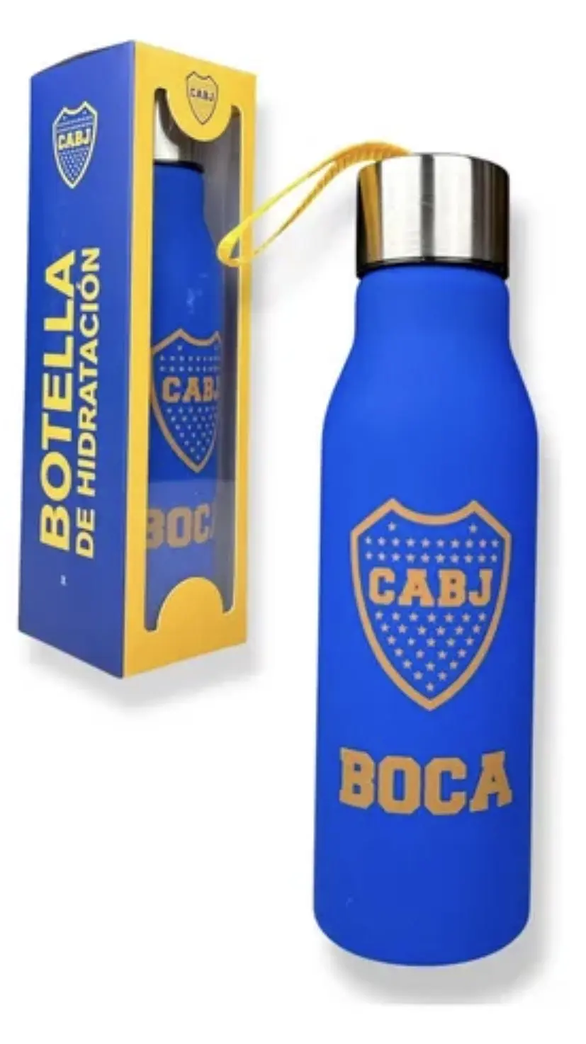 Hidratate con estilo y llevá a tu club siempre con vos. Esta práctica botella de plástico cuenta con una tapa a rosca de aluminio, segura y resistente, acompañada por una soguita que facilita su transporte en todo momento.