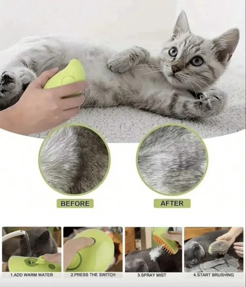 La innovadora función de pulverización ayuda a mantener el pelaje húmedo, evitando que el pelo vuele, lo que da como resultado un ambiente mas limpio y cómodo tanto para la mascota como para los dueños .