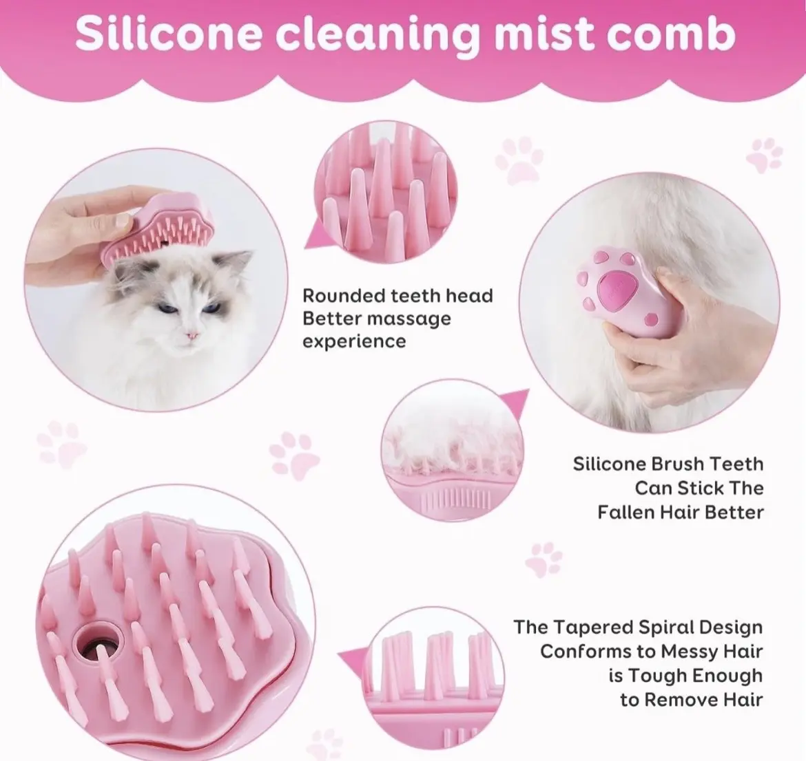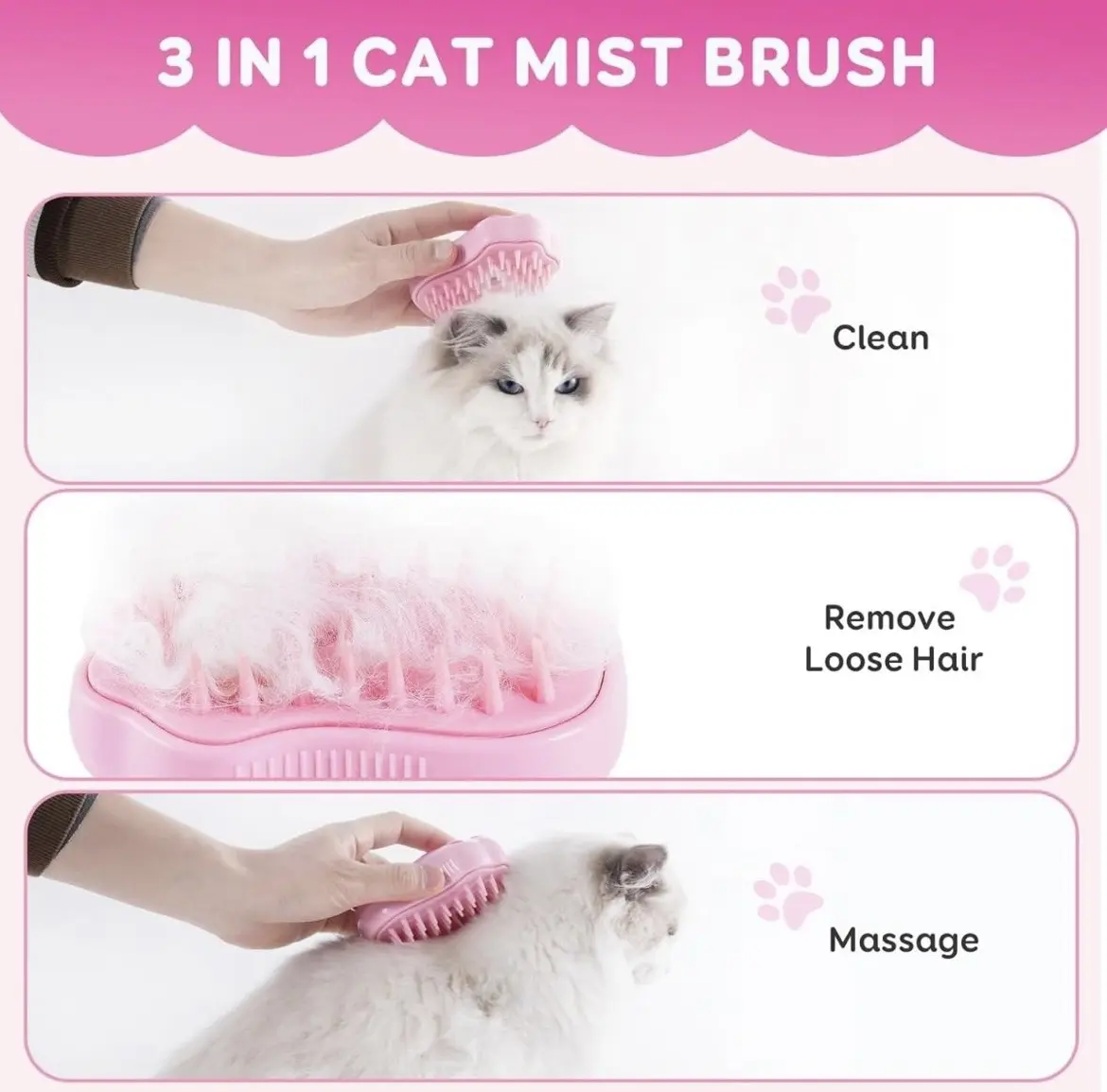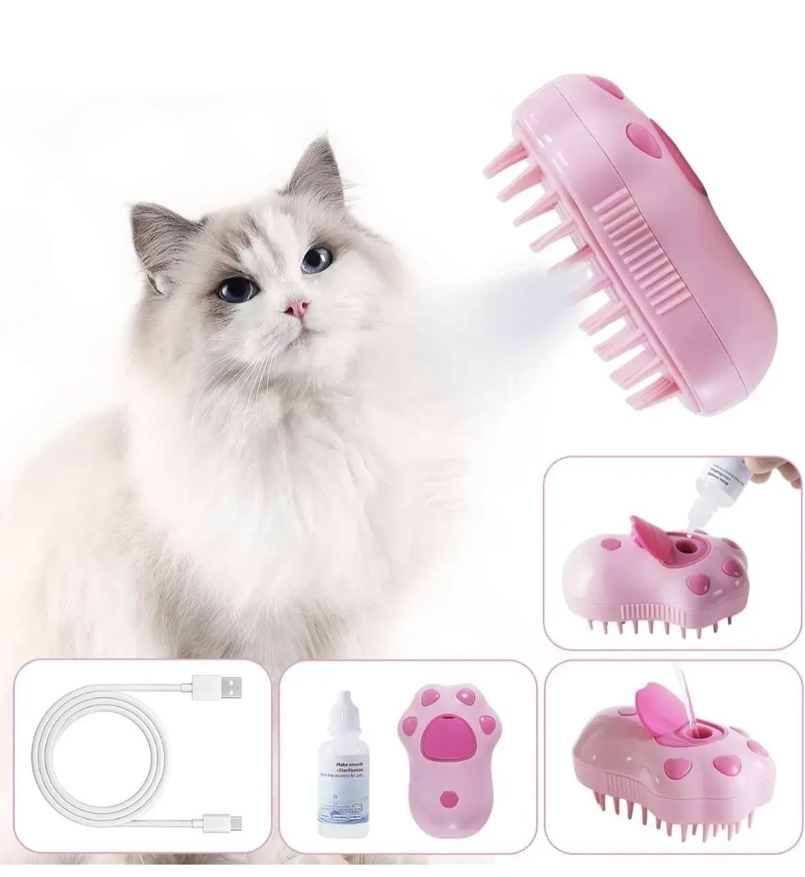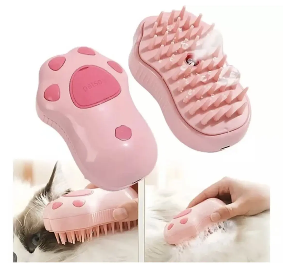 Este dispositivo 3 en 1 no solo cepilla, sino que también masajea y utiliza vapor para eliminar la suciedad y el pelo suelto, mejorando la salud del pelaje de tus mascotas.