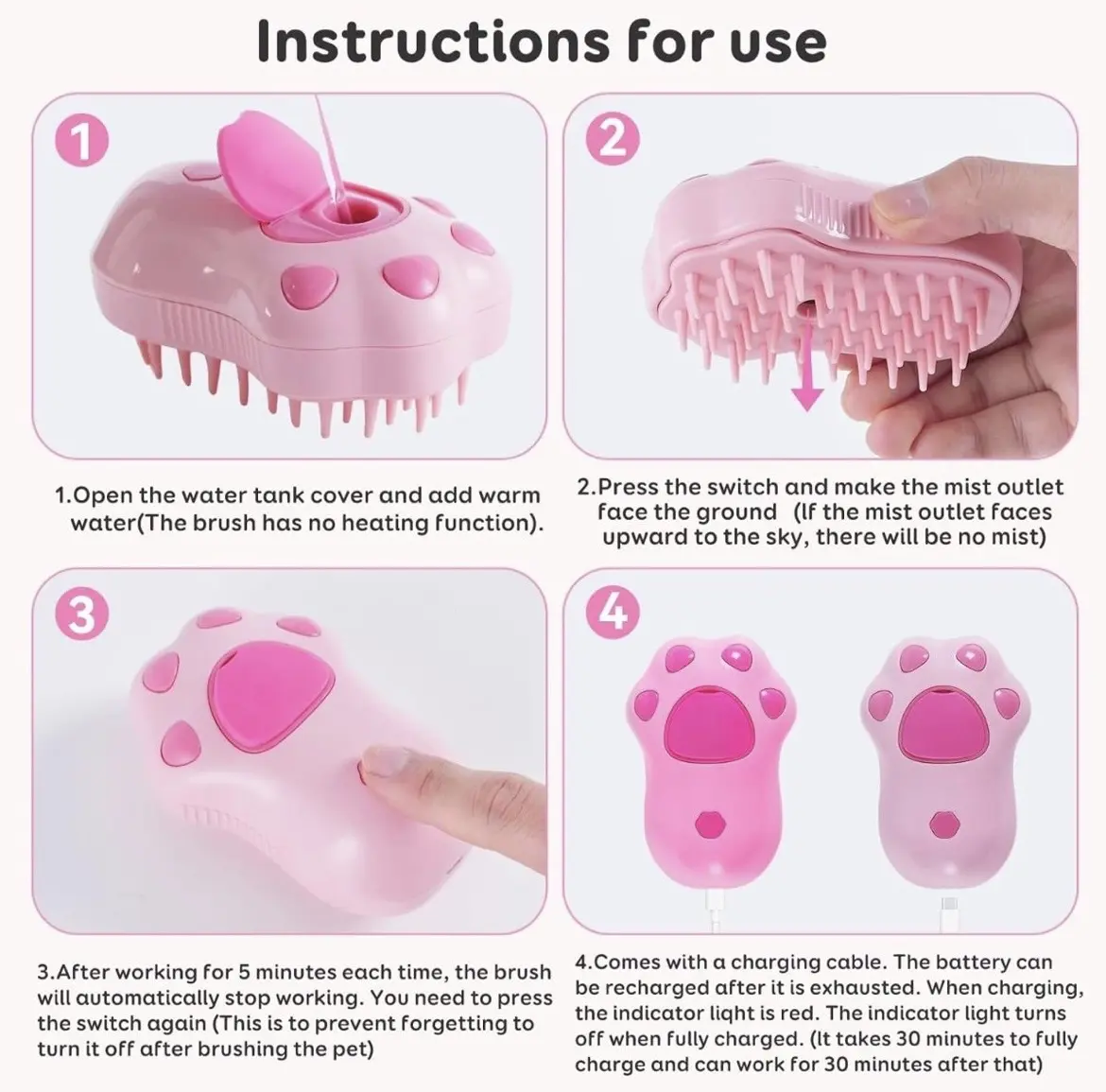 Ideal para perros y gatos, el cepillo de vapor es fácil de usar y cuenta con una batería recargable para mayor comodidad.