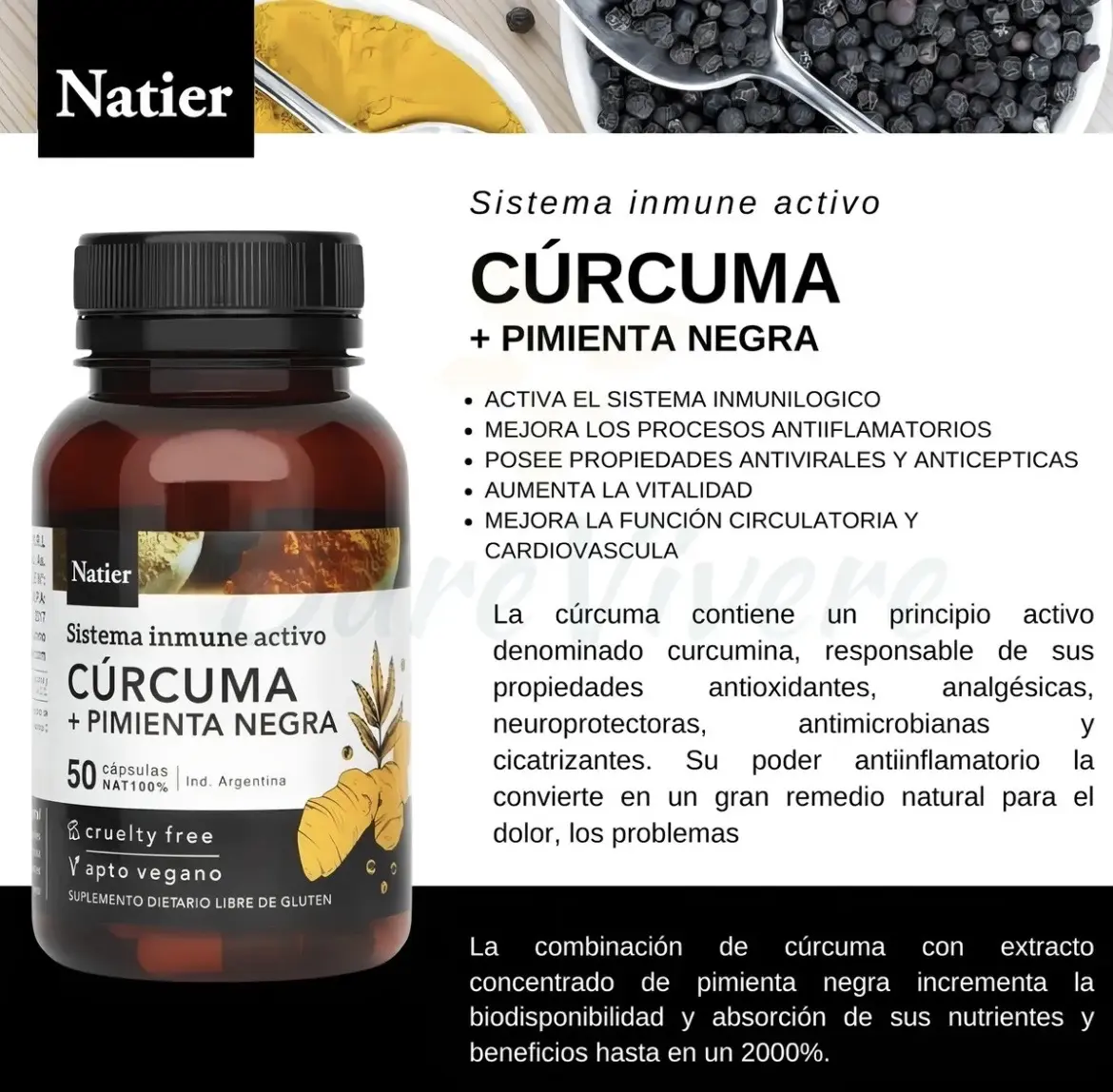 La cúrcuma proviene del rizoma de las plantas y su uso es milenario en los países orientales, especialmente en la India y en el sudeste asiático, de donde es originaria. Se utiliza tradicionalmente como un suplemento energético, antioxidante, desintoxicante, neuro protector y antiinflamatorio. Además contribuye a mejorar las alteraciones digestivas, combatir la acción de los radicales libres, estimular la combustión del exceso de grasas y aliviar dolores musculares y articulares.