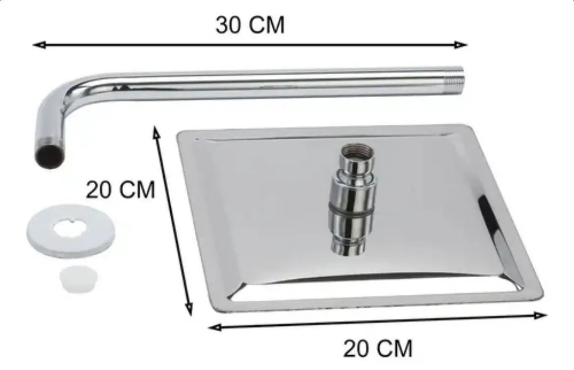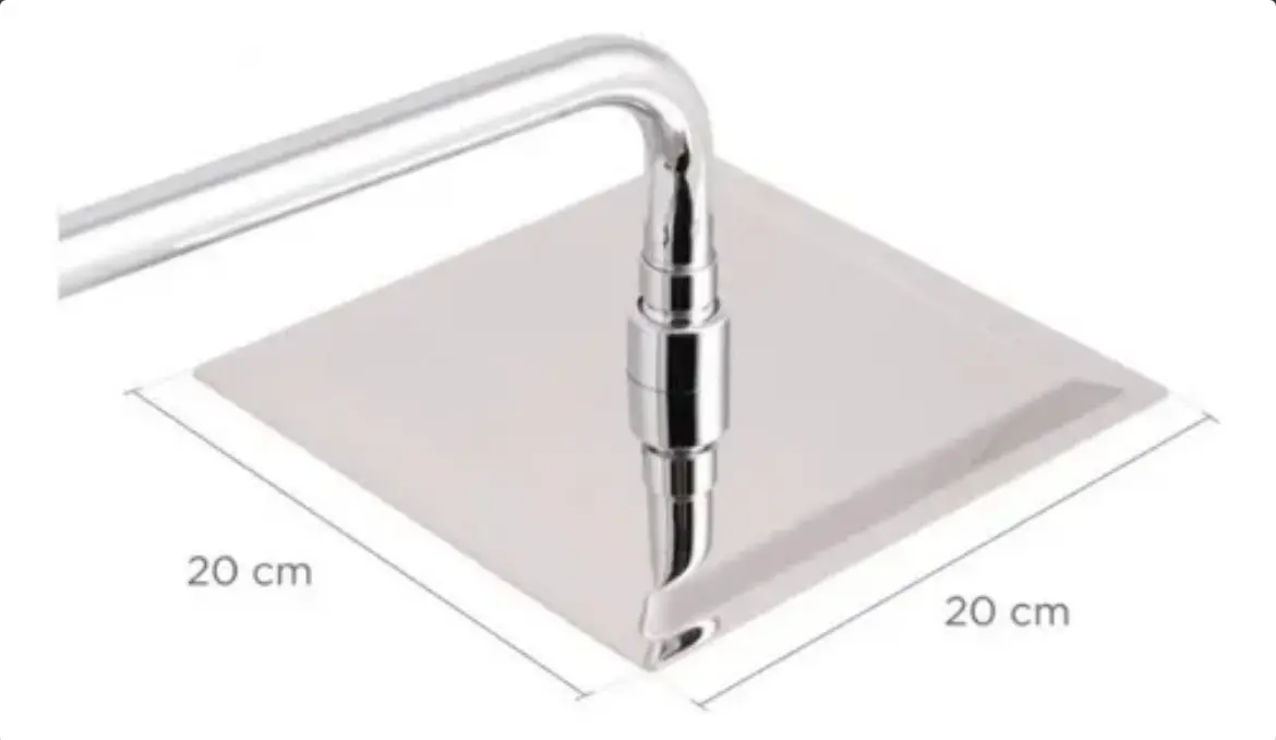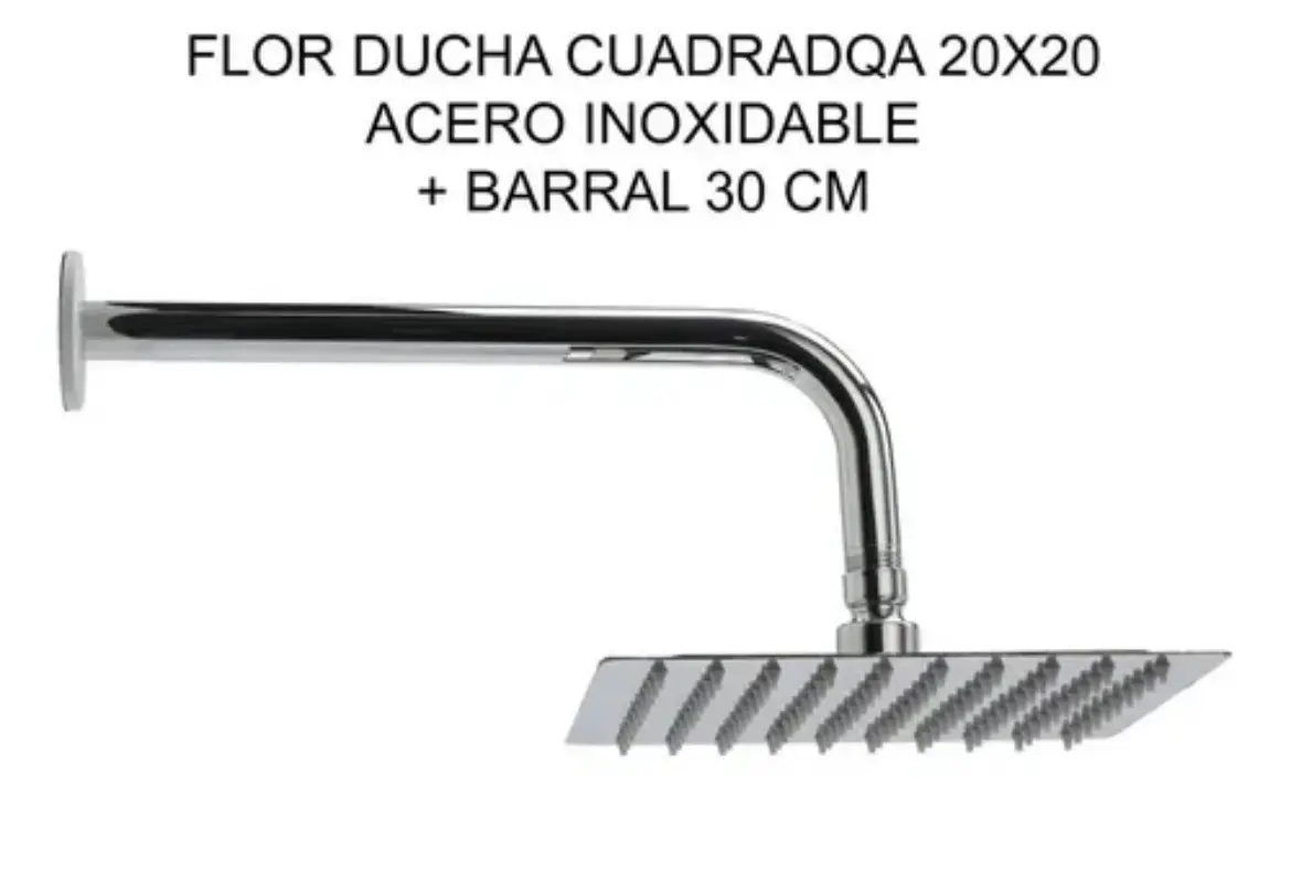 Flor de Ducha Cuadrada 20×20 Cm Acero Inoxidable Acabado Ultra Fino Con Caño De 40 Cm Baños Sanitarios