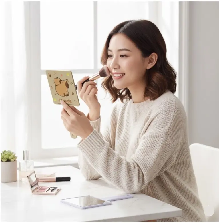 Este Espejo Forma Cuadrada de Mano Capybaras captura la esencia del popular, con un diseño adorable, siendo funcional. Su forma de cuadrada y el color beige vibrante lo convierten en el accesorio de moda perfecto para los fans. Es ideal para llevar contigo, te puedes retocar tu maquillaje en cualquier lugar.