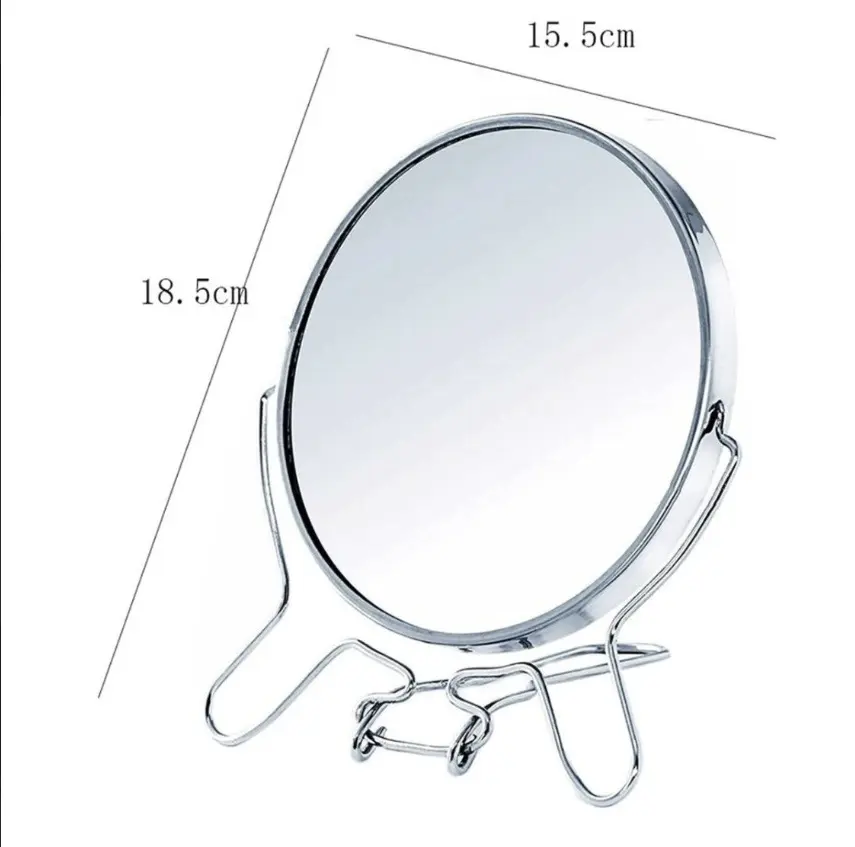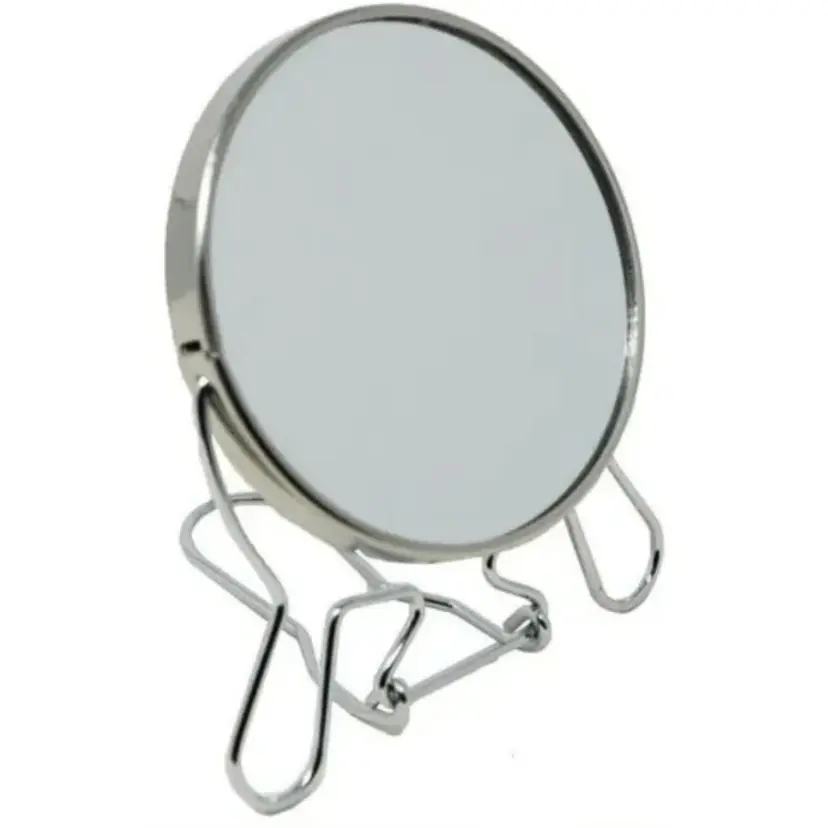 Este Espejo de Maquillaje 3X con Aumento 5" es la herramienta esencial para cualquier rutina de belleza. Su diseño de doble cara te ofrece una visión con aumento de 3X para trabajos de precisión (cejas, delineado) y otra cara sin aumento para una visión general. El marco de metal plateado, cuenta con la base ajustable garantizan durabilidad.