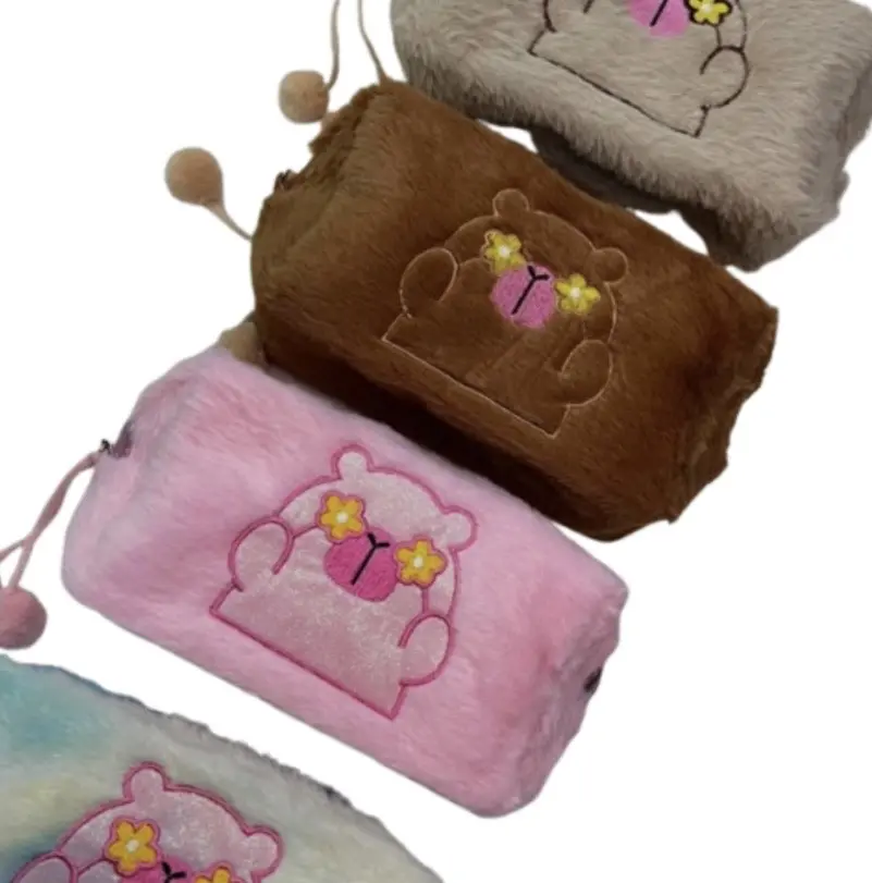 Estuche Porta Cosméticos de Capybara destaca por su textura de felpa falsa ultra suave y su encantador diseño. Es el compañero perfecto para organizar tu maquillaje, artículos de cuidado personal o útiles escolares con un toque de dulzura.