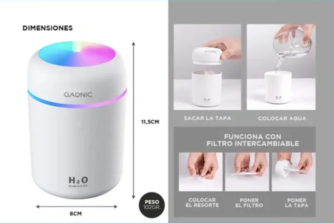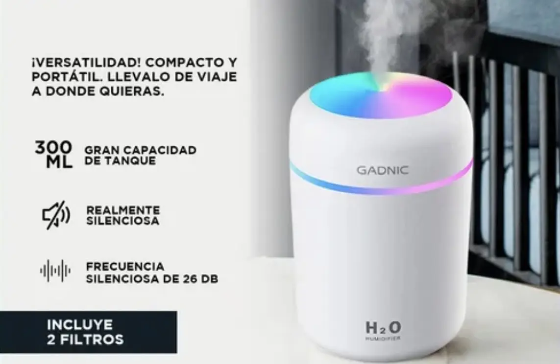 El diseño portátil y pequeño es muy fácil de llevar a cualquier lugar. La fuente de alimentación USB es compatible con cualquier puerto USB de dispositivo, lo que garantiza que se pueda usar en el dormitorio, la oficina o el automóvil. Los humidificadores ultrasónicos producen una frecuencia casi silenciosa de 26 dB (más silenciosa que una biblioteca), lo que garantiza un funcionamiento ultra silencioso. Este humidificador no le molestará mientras duerme y trabaja. Puede hidratar eficazmente la piel seca y ayudarlo a reducir la descamación de la piel.