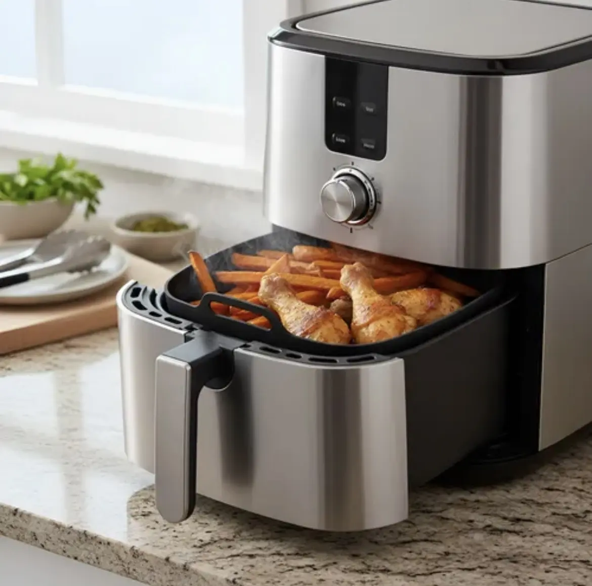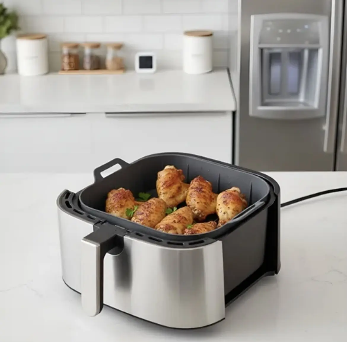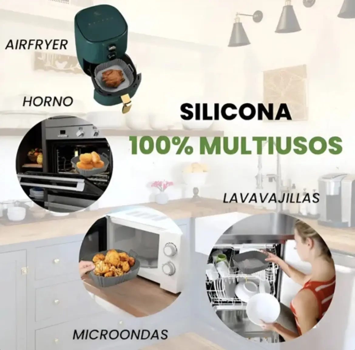 Este molde cuadrado de silicona es ideal para cocinar carnes, verduras, papas y mucho más en horno o freidora de aire. Su base con relieve tipo parrilla permite una cocción pareja y saludable, separando los alimentos de la grasa acumulada.