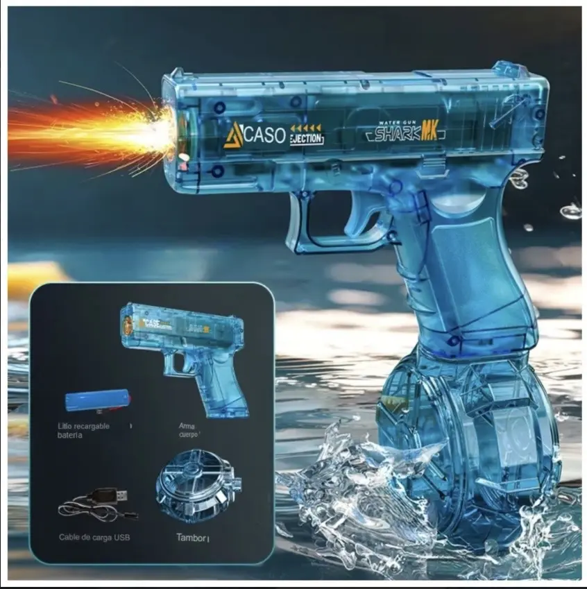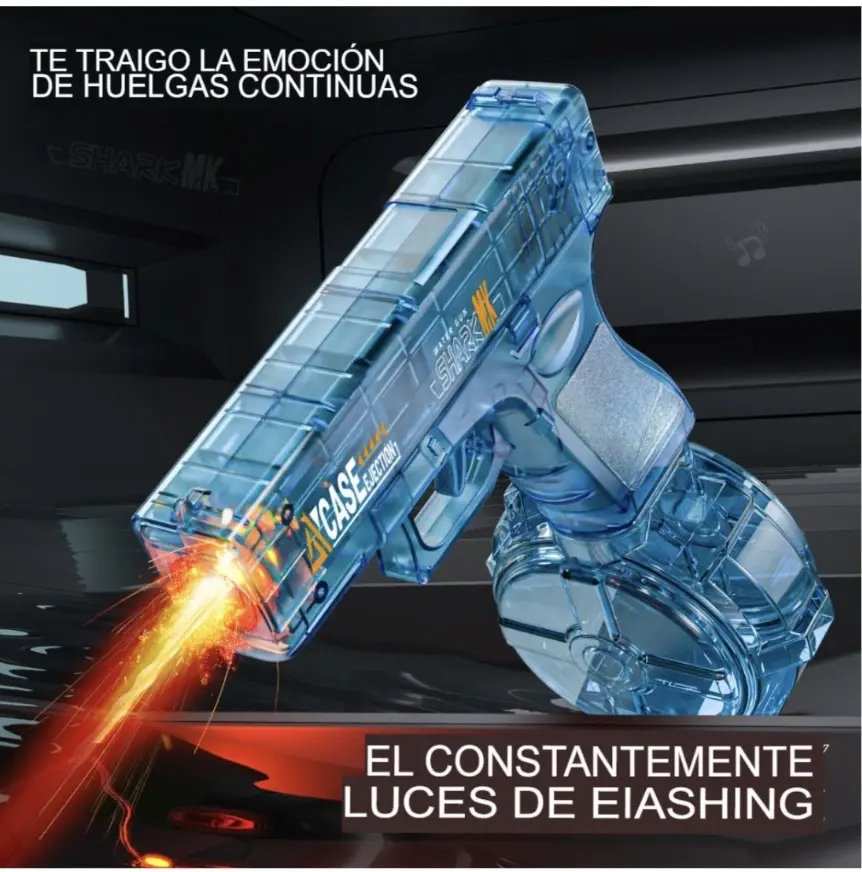 Esta Pistola de Agua Eléctrica SHARK MK ofrece disparo continuo y rápido con solo apretar el gatillo, eliminando la necesidad de recargar manualmente. Su gran cargador de tambor te da más tiempo de juego. Es el juguete perfecto para la piscina, la playa o el parque, garantizando horas de diversión emocionante.