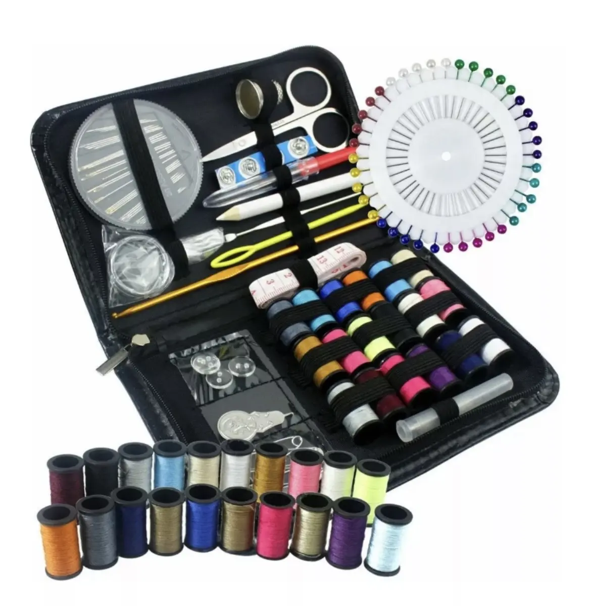 Set De Costura Estuche Agujas Hilos Tijera Coser Costurero 128Pzs