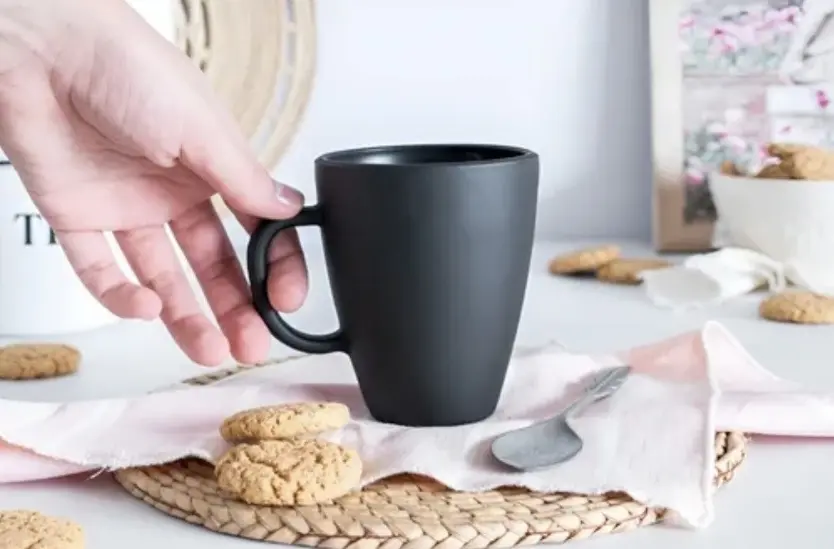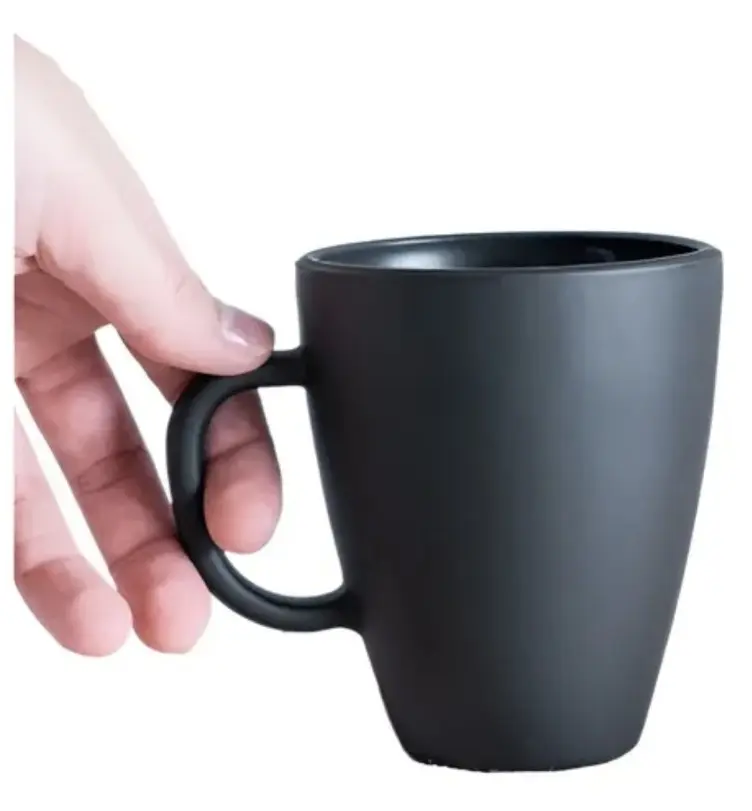 Fabricada en vidrio pintado, esta taza presenta un acabado en color negro o perla, lo que le da un toque de elegancia y sofisticación. Su forma armoniosa se adapta perfectamente a la mano, proporcionando un agarre cómodo y seguro.