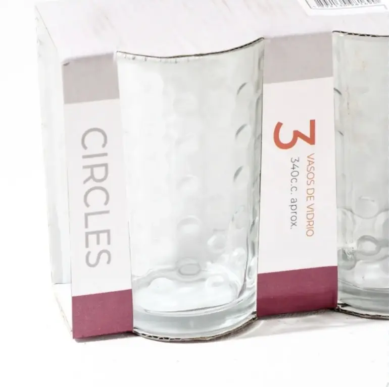 3 vasos de 340 cc: Perfectos para agua, gaseosas o tragos.